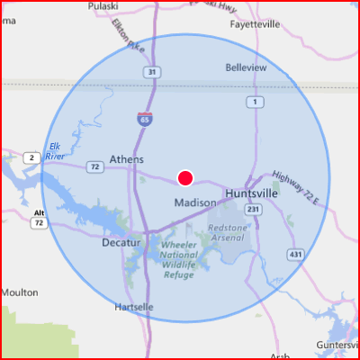 Based out of Madison, Alabama we serve those within 30 miles. This would include parts of south Tennessee and a majority of North Central Alabama. View our map to see if we serve your area. If you do not see your area highlighted we may be able to help with your project, call or fill out our free quote form below and we will contact you for more details.